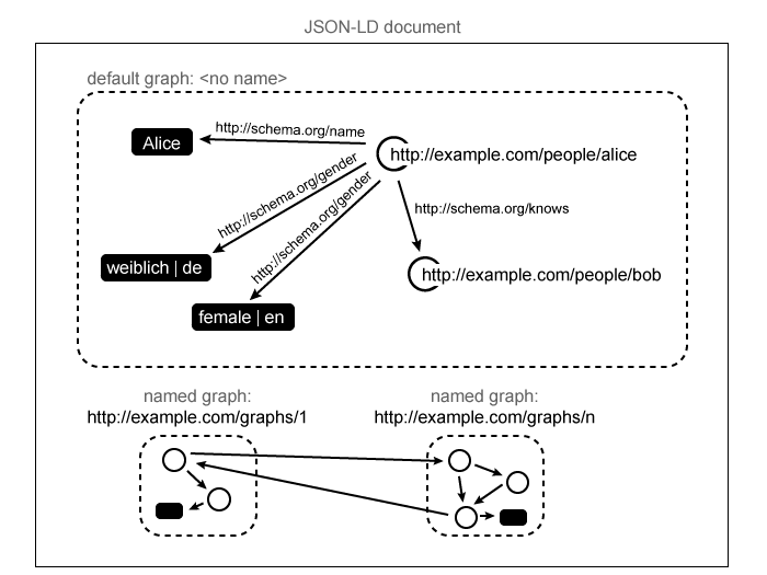 JSON [RFC4627] is a lightweight, language-independent data-interchange format. It is easy to parse and easy to generate. However, it is difficult to integrate JSON from different sources as the data has just local meaning. Furthermore, JSON has no built-in support for hyperlinks - a fundamental building block on the Web. Let's look at an example that we will be using for the rest of this section: